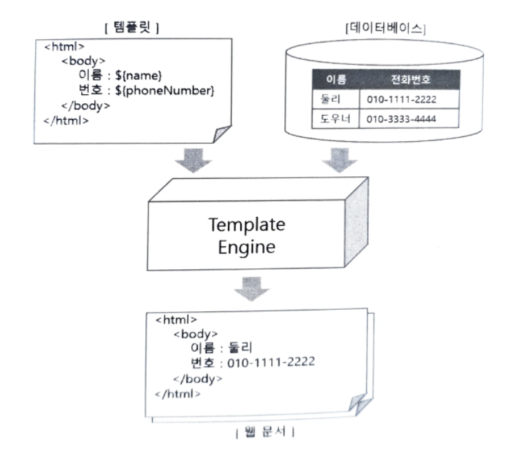 이것들 모두 결과적으로는 지정된 템플릿과 데이터 를 이용하여 HTML을 생성하는 템플릿 엔진이다.