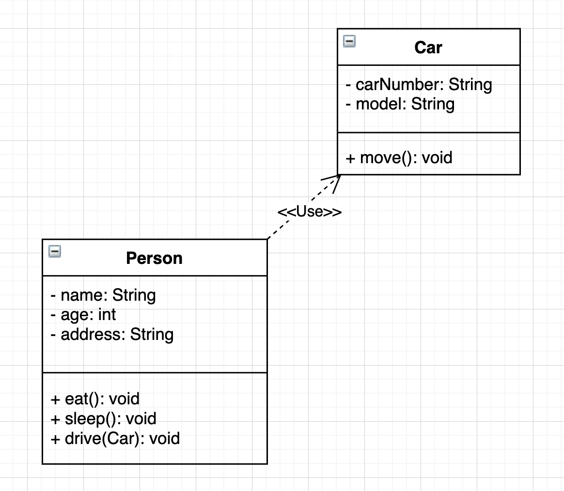 의존 관계는 어떤 클래스가 다른 클래스를 참조하는 것을 말한다.