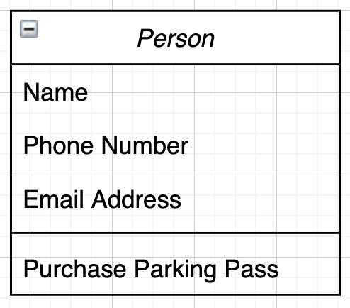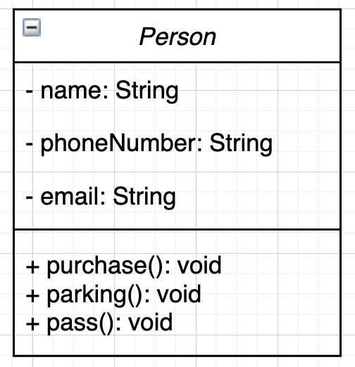 제일 윗 부분에는 클래스의 이름을 작성하고, 중간 부분에는 클래스의 속성(클래스의 변수)을 작성한다.