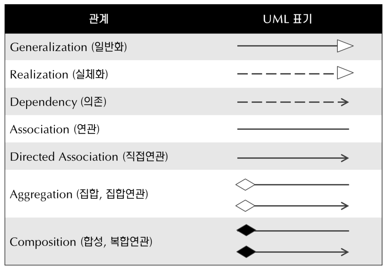 연관 관계는 실선으로 표현하고, 직접 연관 관계는 화살표로 표현한다.