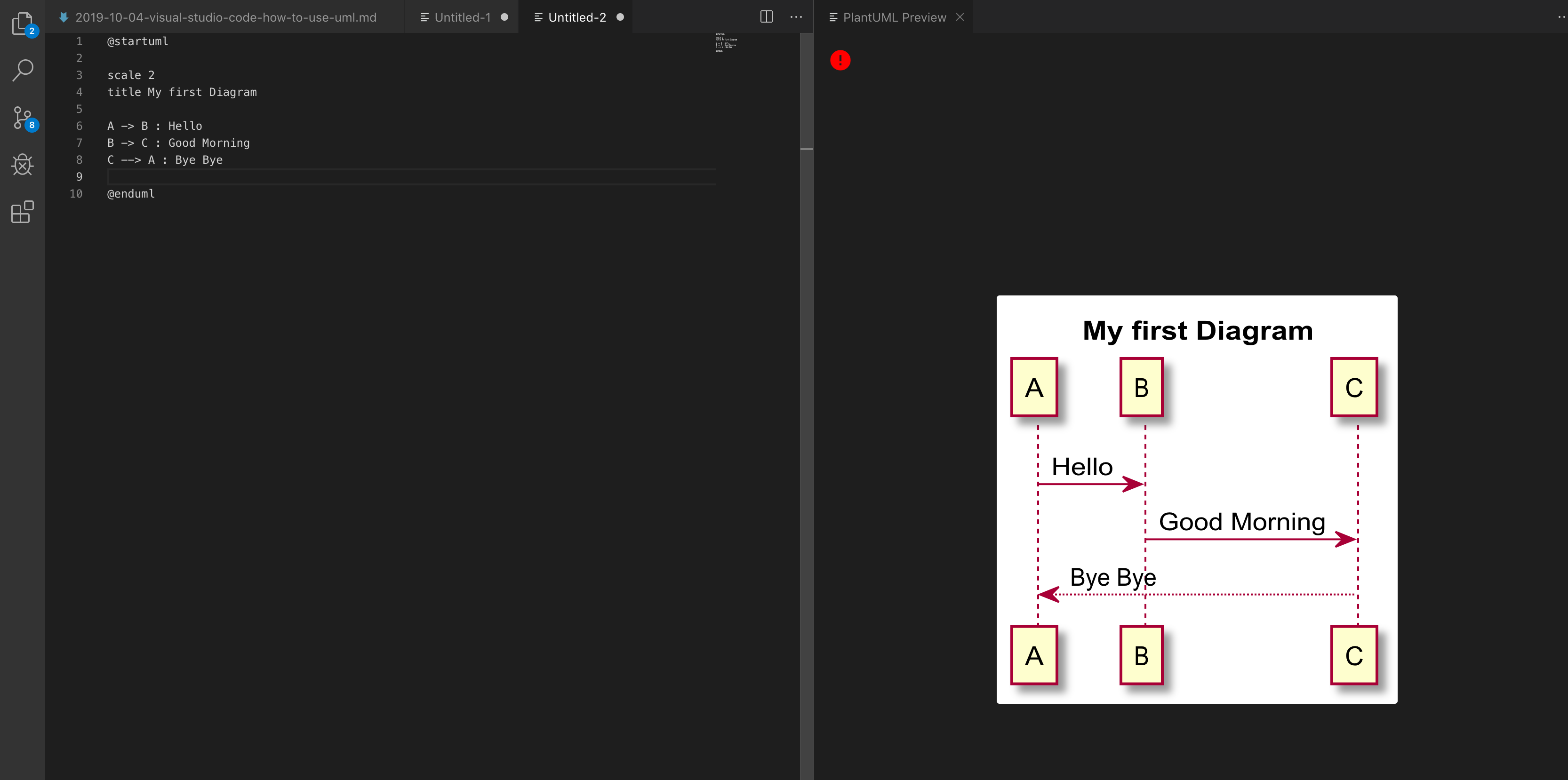VSCode의 EXTENSIONS: MARKETPLACE에서 PlantUML 플러그인을 설치합니다.