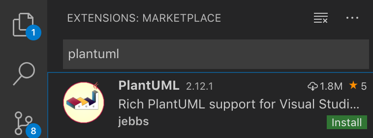 VSCode의 EXTENSIONS: MARKETPLACE에서 PlantUML 플러그인을 설치합니다.