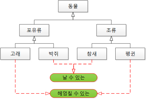 또한 전혀 다른 클래스들에게 사용한다기 보단 비슷한 특징을 가지고 있는 클래스들에게 사용한다는 특징도 가지고 있습니다.